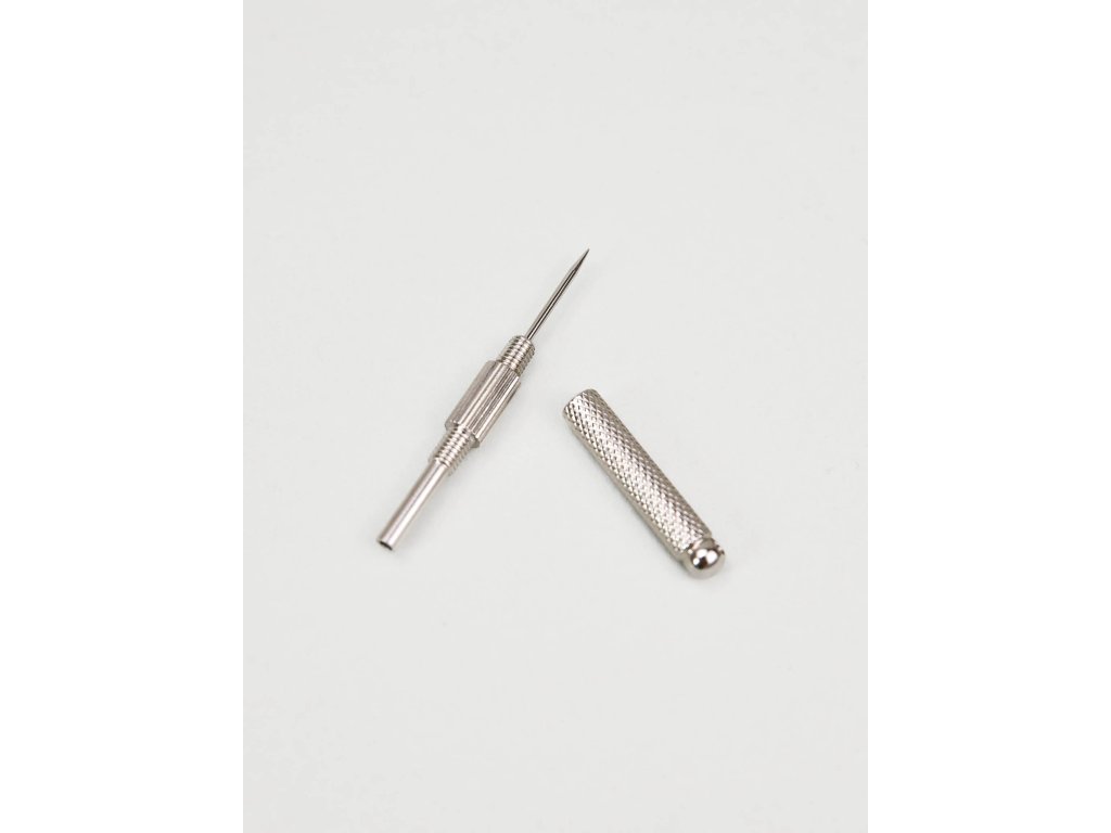 Nástroj pro čištění kenzanu. Dutá část pomáhá narovnat zkřivené hroty a opačný konec s jehlou je určený pro čištění prostoru mezi nimi.Buďte první, kdo napíše příspěvek k této položce.