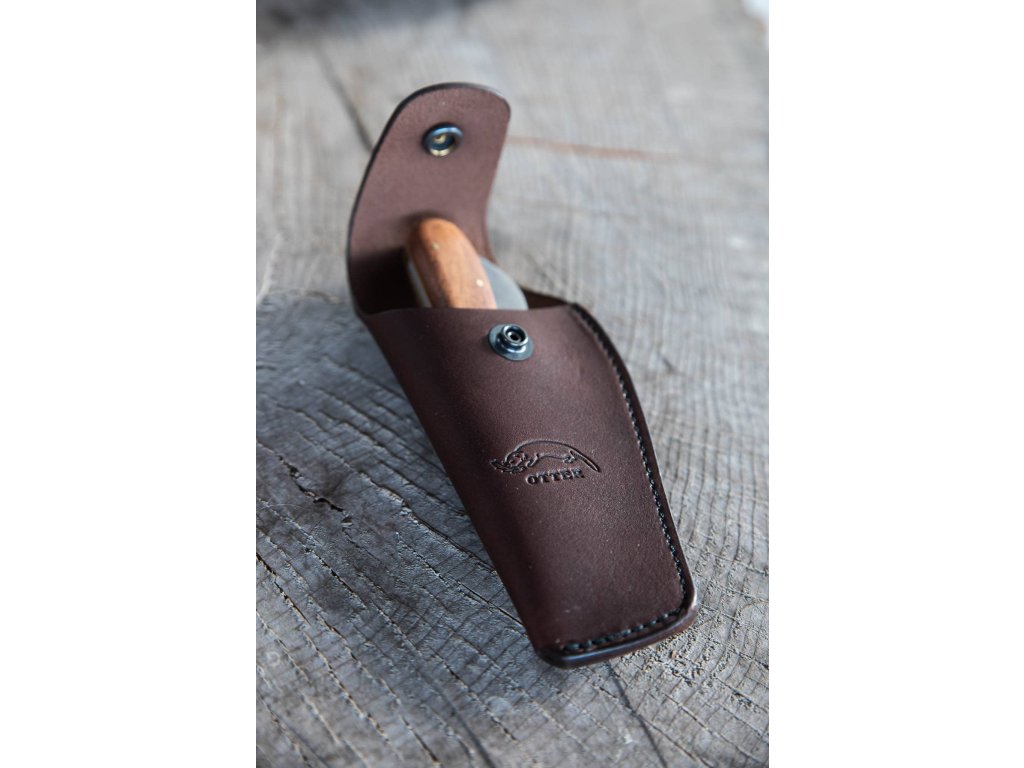 Kožený obal je vhodný pro všechny zahradní nože od firmy OTTER. Díky své atypické konstrukci se nože zřídka kdy vejdou do běžných pouzder. Tento obal je vyroben z hovězí kůže a na zadní straně je opatřen poutkem pro opasky do šíře 5 cm. Na přední straně je ražba s logem firmy OTTER.- materiál: hovězí kůže