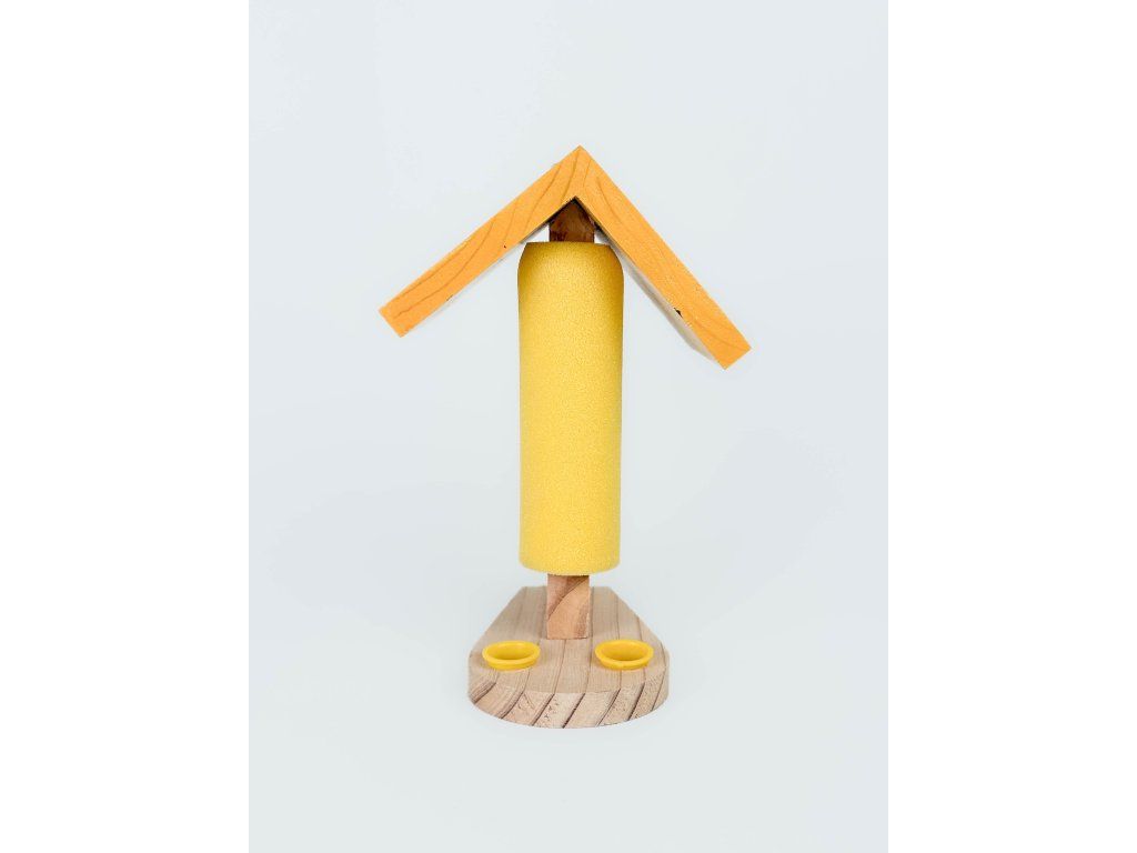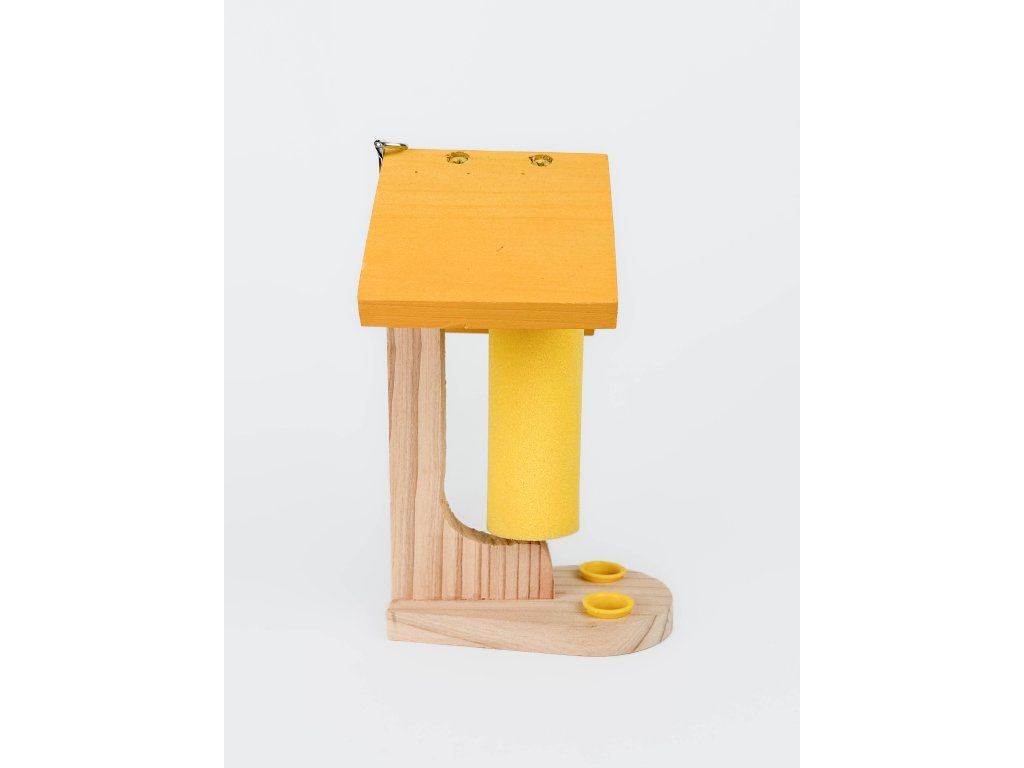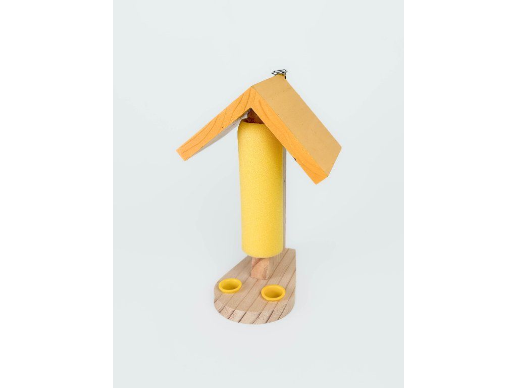 Krmítko je vyrobeno z masivního, přirozeně odolného dřeva FSC a nevyžaduje ošetření. Přirozená barva dřeva však vybledne do stříbrošedé a pokud si přejete zachovat celkový vzhled krmítka, můžete jej ošetřit vodou ředitelnou venkovní barvou nebo lakem.