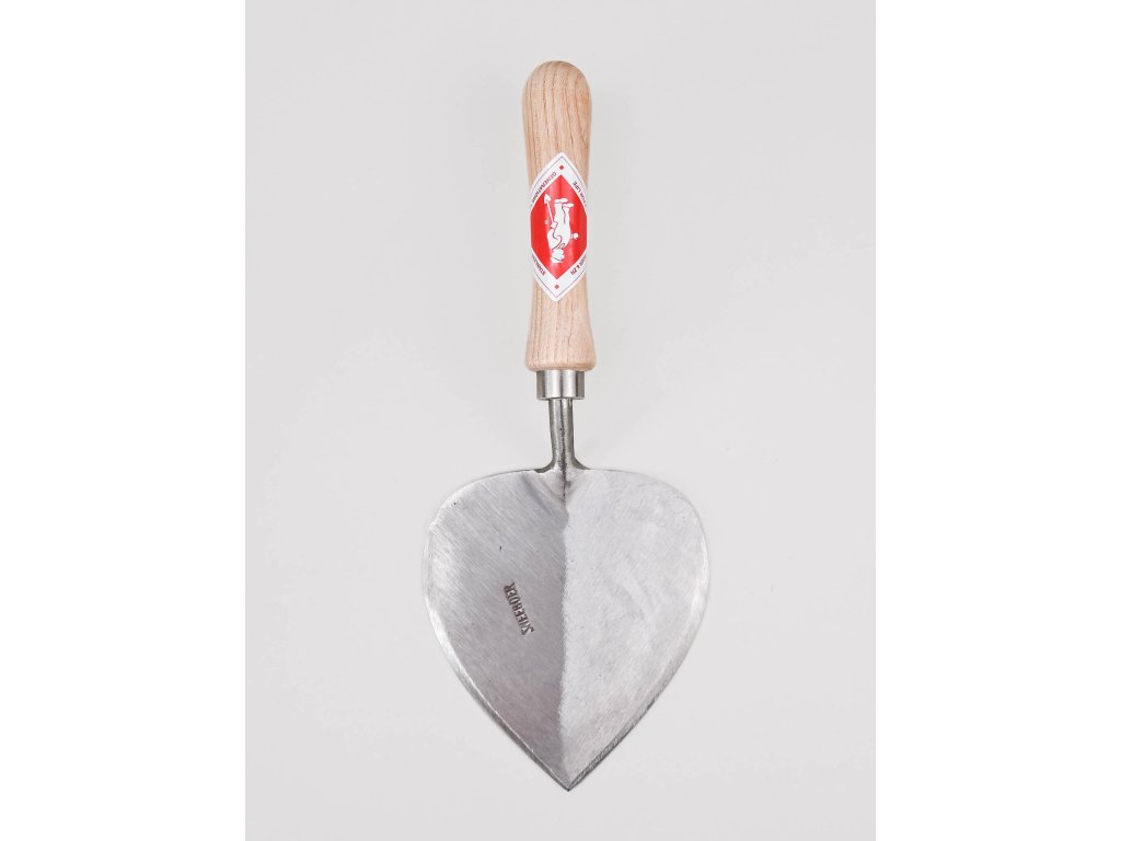 Konstrukce této atypické sázecí lopatky pochází z počátku 20. století a lze ji použít k výsadbě cibulovin, sazenic a malých rostlin. Velká hlava je také velmi účinná při rozbíjení a obracení půdy. Sázecí lopatka je ručně kovaná z nerezové oceli a oboustranně broušená, což z ní činí dokonalý nástroj pro rychlou a přesnou práci. Je vyvážená a většina její hmotnosti je umístěna v čepeli nástroje. To se může zdát zvláštní, ale je to dokonalý příklad toho, že forma následuje funkci, protože lopatka je určena k hloubení výsadbových jamek a méně se hodí k nabírání nebo kopání. Těžká čepel usnadňuje a zpříjemňuje zajíždění do půdy, protože je zapotřebí menší síly. Když je čepel pevně v zemi, kývejte s ní sem a tam a po vyjmutí čepele z půdy vám zůstane dokonalá výsadbová jáma.Oblíbenec zahradníků v Keukenhofu i Montyho Dona